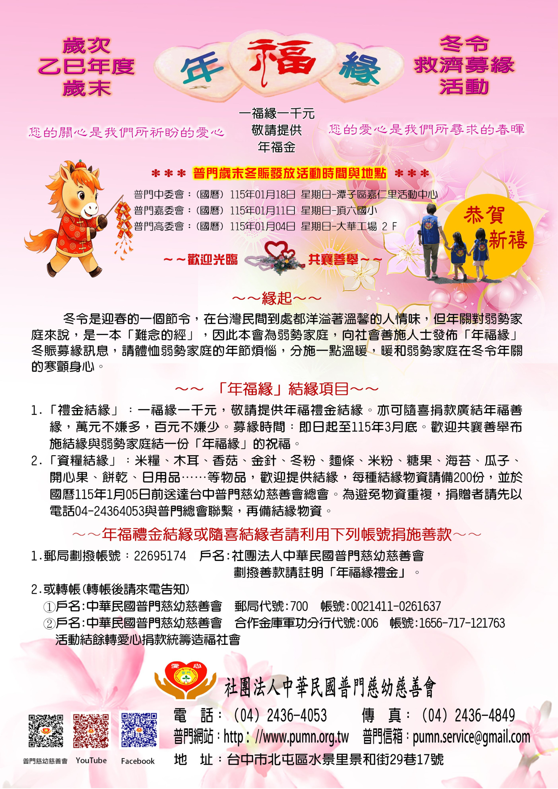 【歲次乙巳歲末-年福緣冬令救濟募緣活動】開始囉~