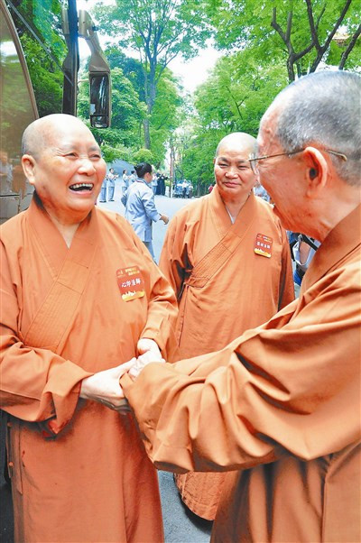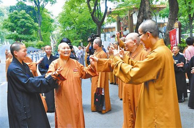 拍完大合照,包括慈莊法師、慈惠法師等老師,心定和尚、慧龍法師等大學長,與正在念書的學生,唱著〈佛光照耀著你〉,一起歡送學長們離開,許多法師臨上車前還交代老師、同學「有空到我那裡坐坐」,五十年的師生情誼,不因時光荏苒而消失。