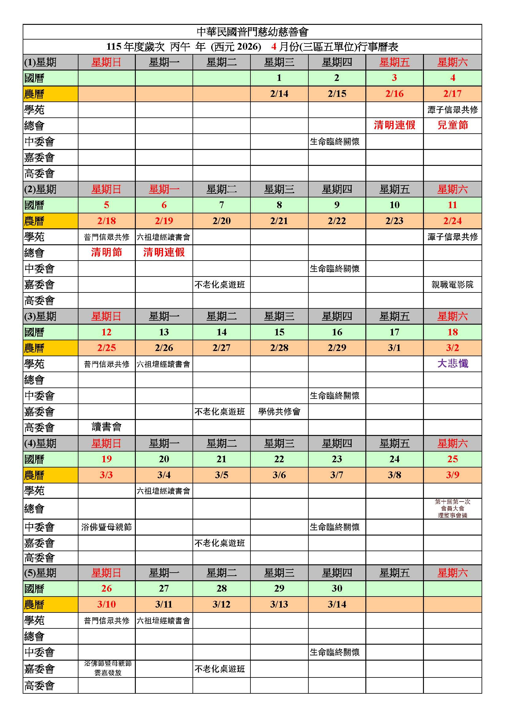 115年四月行事曆